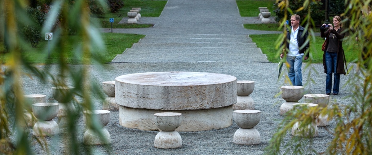 The Table of Silence, The Kiss Gate and the Endless Column – these are the three sculptural components from Targu-Jiu, made by Constantin Brancusi, which constitutes an homage to the hero soldiers fallen during the First World War. The initiative of achieving this ensemble belonged to Aretia Tatarascu, in 1937.