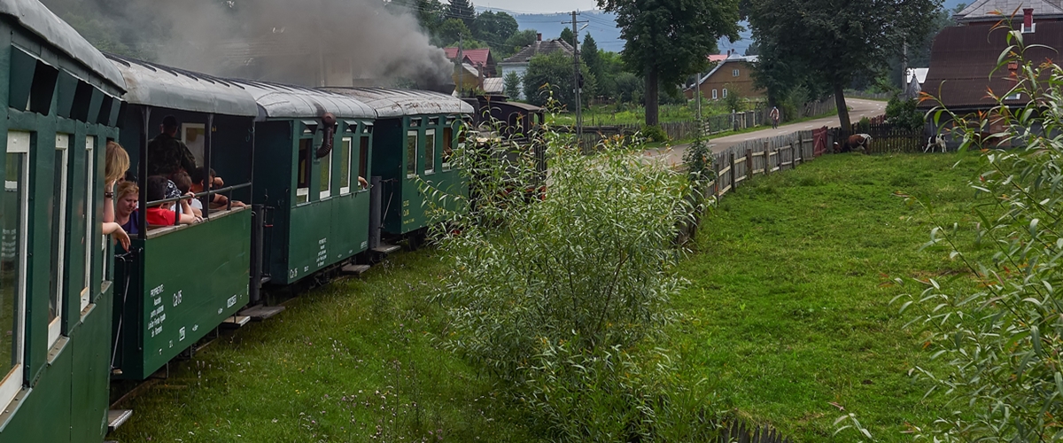 The old steam train takes you on a foray into the past, through the villages with picturesque houses, lined up along the Moldovita River. Haystacks and shutters can be seen on all the hills, aswell as traditional houses with folks doing their daily tasks